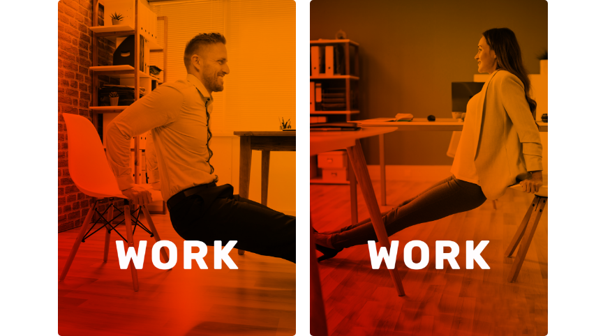 Work, est un programme quotidien de mobilisation et d’étirements que vous pouvez faire directement au bureau. En seulement 5 à 10 minutes par jour, seul ou entre collègues, vous améliorez votre posture, mobilisez tout votre corps, réduisez le stress et prévenez les douleurs et troubles musculo-squelettiques. Nul besoin d’être en tenue de sport pour avoir une journée active.